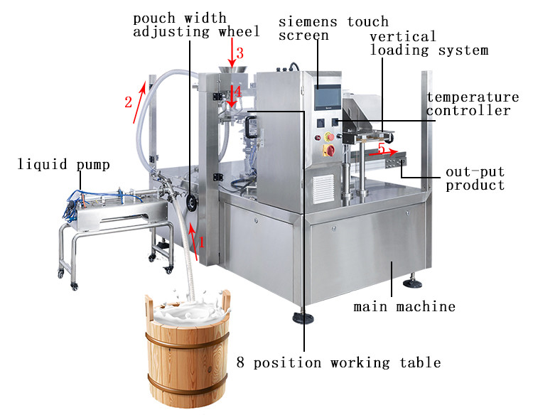 | Η ροή εργασίας | Τύπος παροχής→Κωδικοποίηση→Τύπος ανοίγματος ((ή Τύπος ανοιχτού φερμουάρ)→Πλήρωση→Υπηρεσιακό→Εξάτμιση→Θερμική σφράγιση→Σχηματισμός και εξόδου προϊόντων. | ||