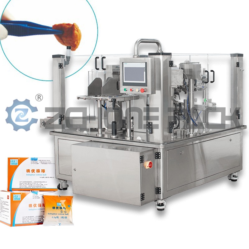 Μηχανή συσκευασίας βαμβακερών σφαιρών με ιώδιο ποβιδόνης Στερεά συν υγρό Διπλό υλικό Πολυλειτουργικό συσκευαστήριο